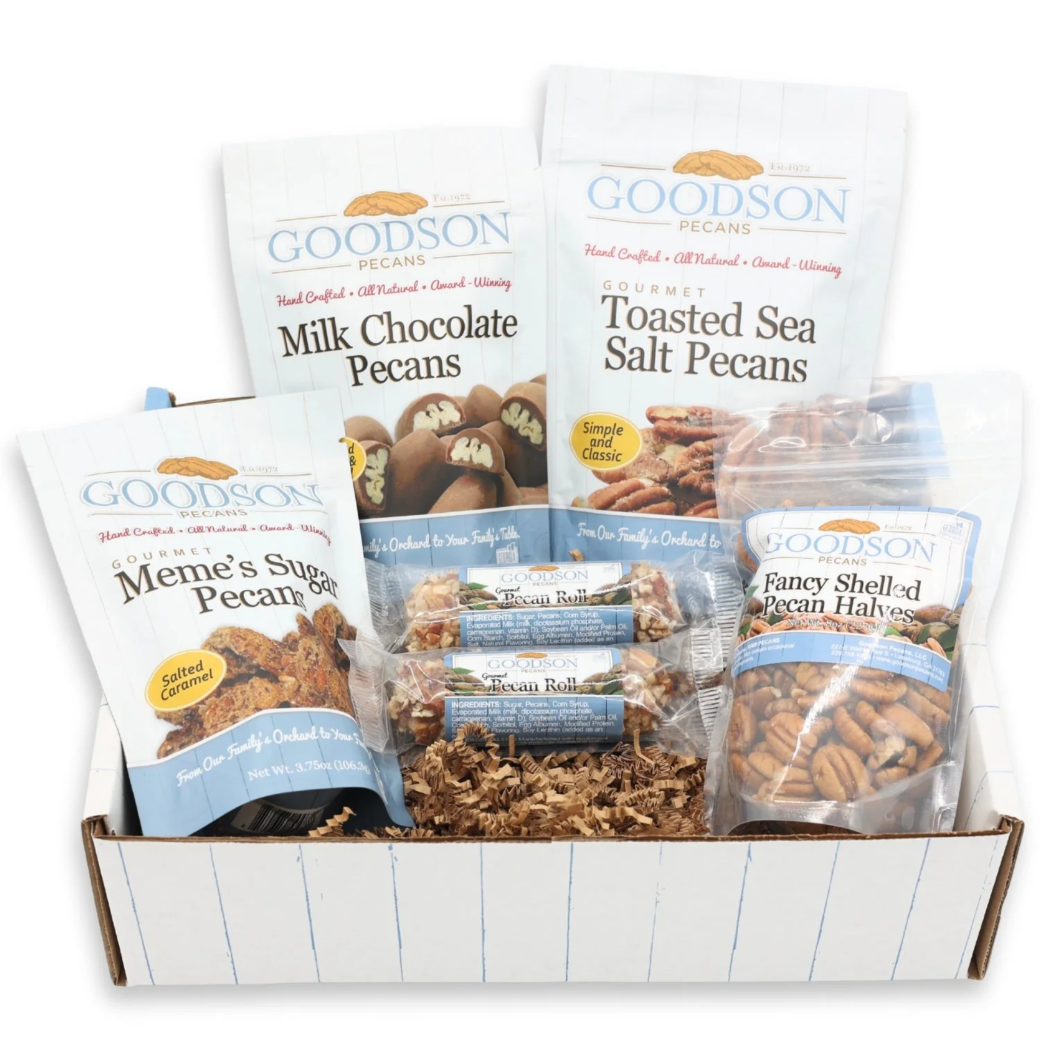A wonderful sampling of our line of candied and roasted pecans! Perfect for anyone who loves pecans.